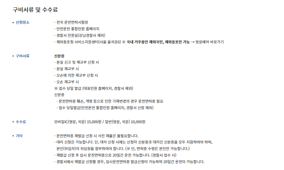 개인정보 변경 및 복잡한 사유 처리 가능 긴급히 면허증이 필요한 경우 즉시 발급 가능 7. 운전면허증 재발급 이후 유의사항
