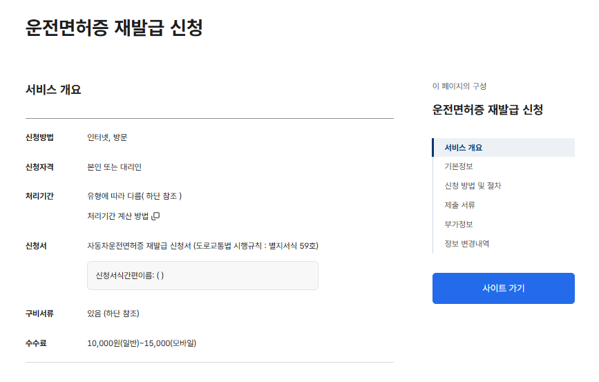 운전면허증 재발급 소요기간, 비용