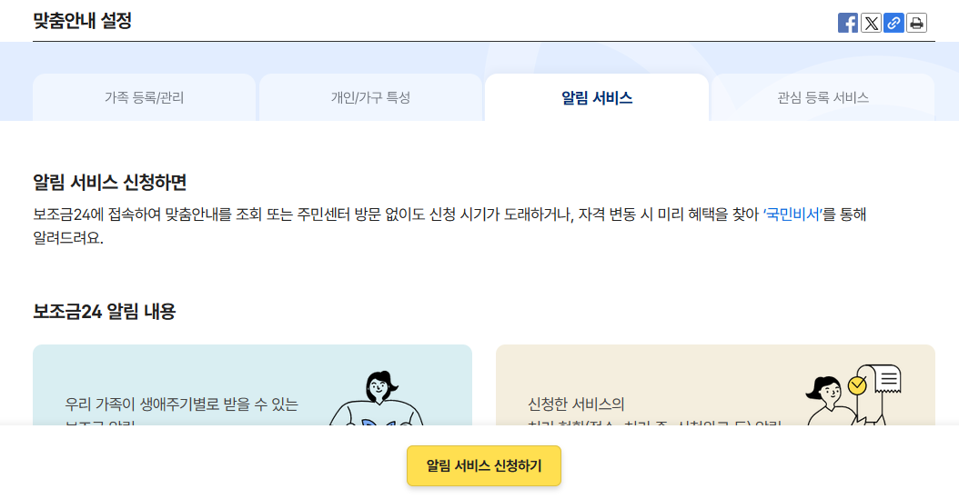 혜택알리미(공공서비스 맞춤 안내) 신청하기