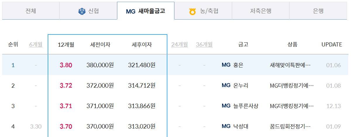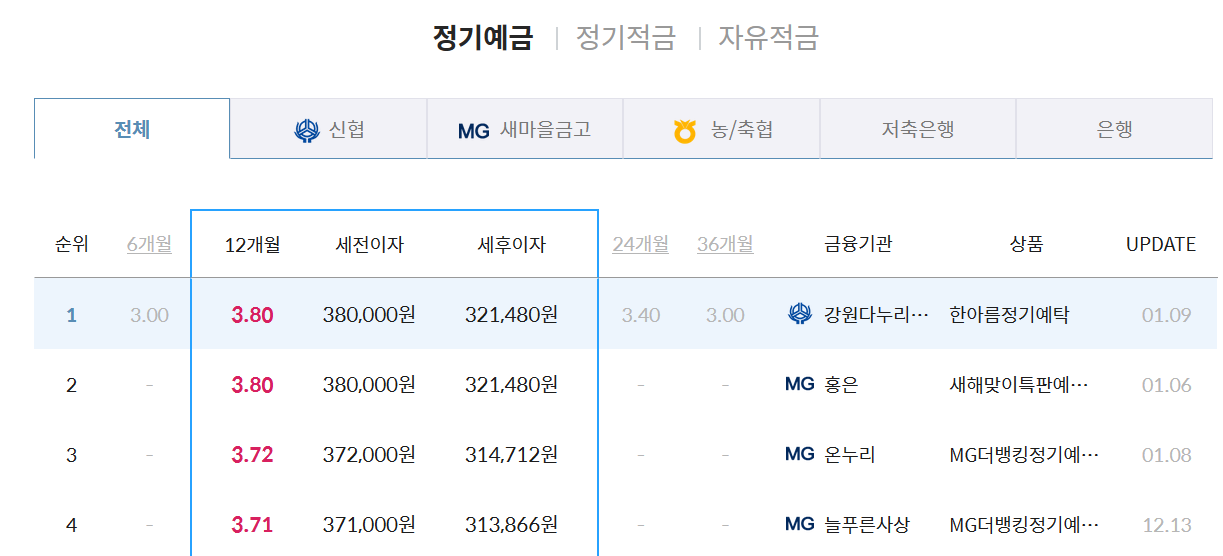 | 서울 강남 금고 | 4.2% | 12개월 | 100만 원 | 신규 고객 한정 |