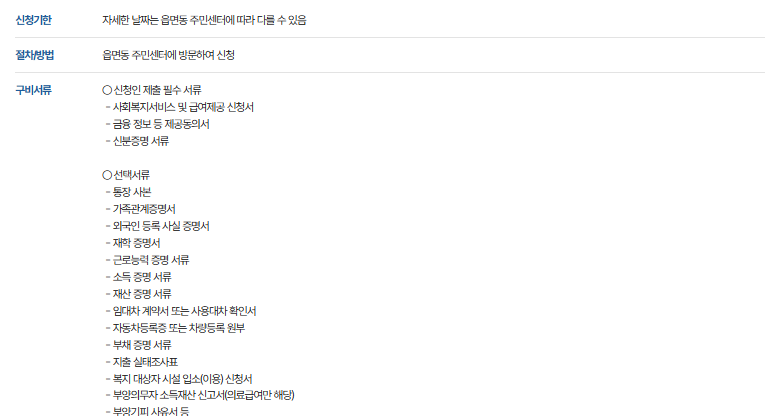 주민등록상 주소지 관할 주민센터를 방문해 상담을 받습니다. 이때, 소득과 재산 상태를 기준으로 수급 가능 여부를 안내받을 수 있습니다.