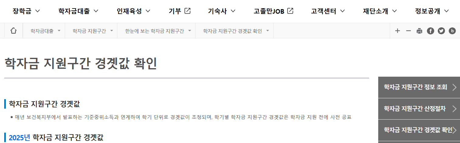 한국장학재단 온라인 홈페이지 접속하여 국장학금 소득분위 모의계산이 가능합니다.