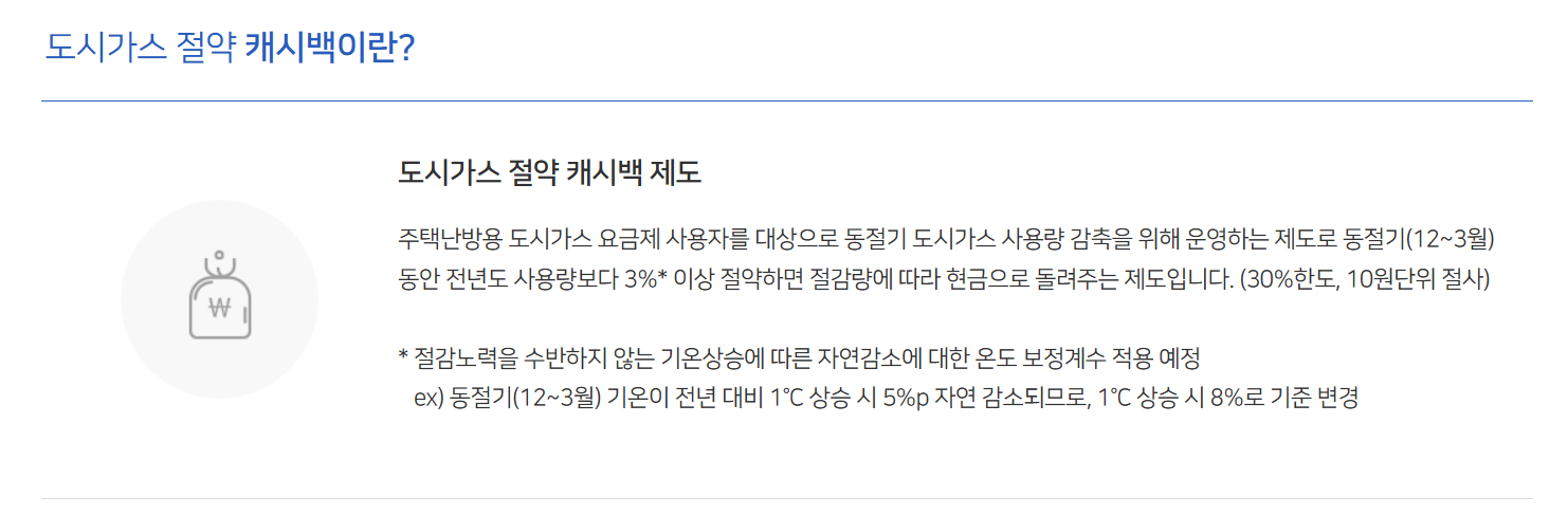 도시가스 캐시백 제도는 가정의 에너지 절약을 장려하기 위해 절감된 도시가스 사용량에 따라 일정 금액의 캐시백이 지급됩니다.