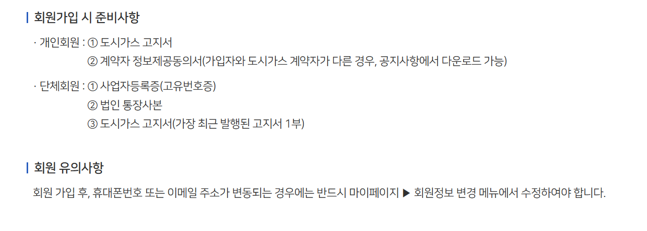 고객번호(도시가스 고지서에서 확인 가능) 주소 및 연락처