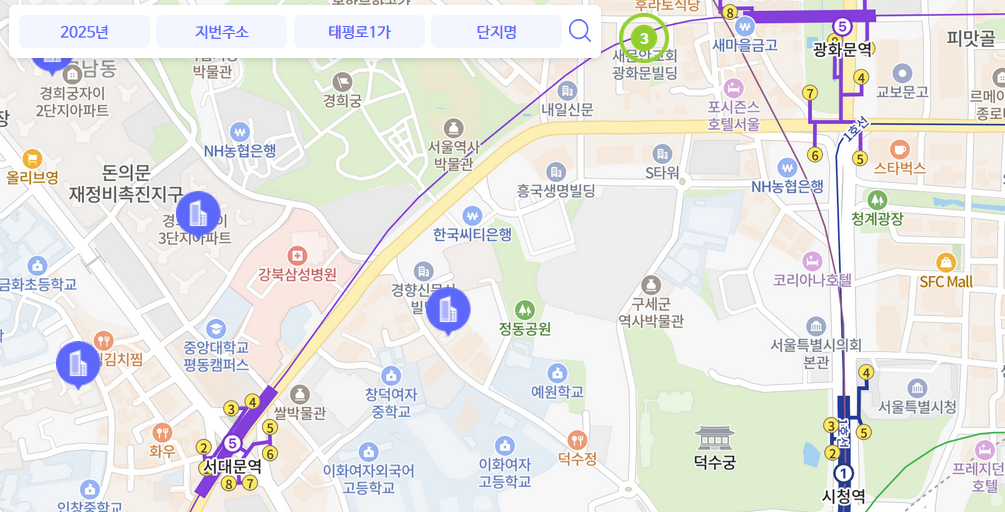 시/도, 구/군, 동을 선택하여 관심 있는 지역을 설정합니다. 예를 들어, 서울특별시 강남구 대치동을 검색할 수 있습니다.