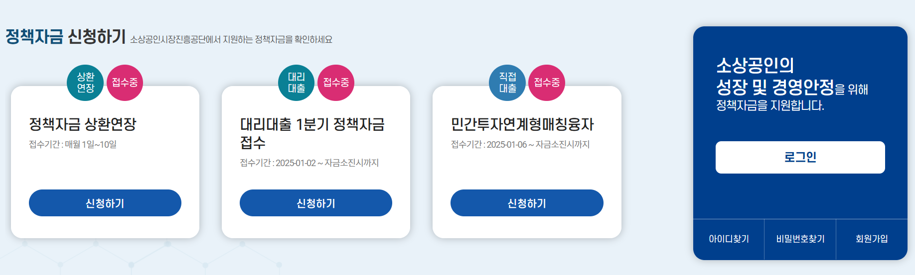 소상공인 정책자금 누리집 서비스