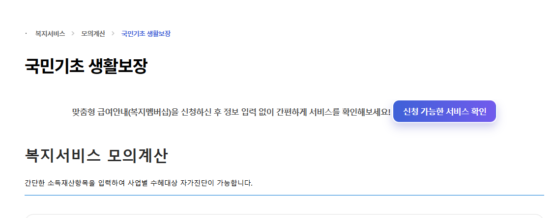 - ‘복지서비스 모의계산’ 선택