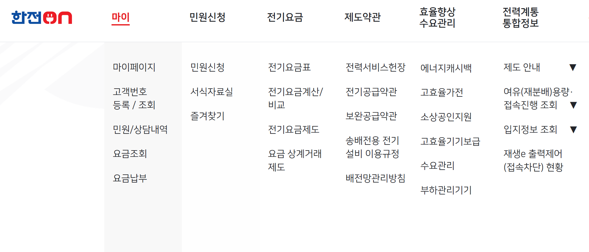 한전on의 주요 기능
