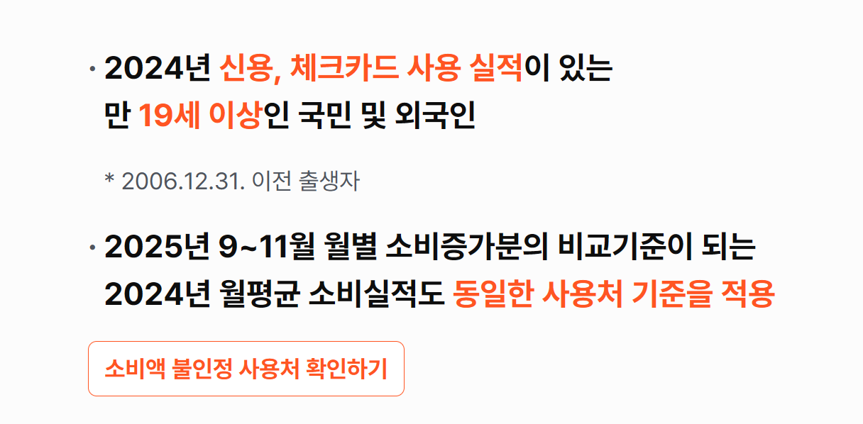 누리집 초기 화면에서는 정책 안내와 신청하기 버튼이 가장 눈에 띄게 배치되어 있어 사용자 편의성이 높도록 설계되어 있습니다. 특히 카드사와 자동 연동되어 이전 사용 실적이 자동으로 불러와지기 때문에 사용자가 입력해야 하는 정보는 최소화되어 있으며, 필요한 절차는 대부분 본인 여부를 확인하는 인증 과정에 집중되어 있습니다. 따라서 인터넷 사용이 익숙하지 않은 사용자라도 안내 메시지에 따라 천천히 진행하면 어렵지 않게 신청을 완료할 수 있습니다.