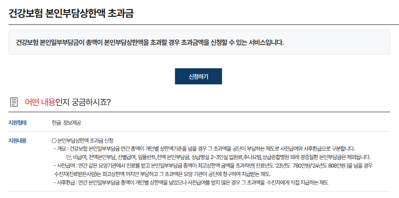 본인부담상한제는 건강적용 항목에 한정되므로, 비급여 항목(예: 성형수술, 선택진료비 등)은 초과금 산정에서 제외됩니다.